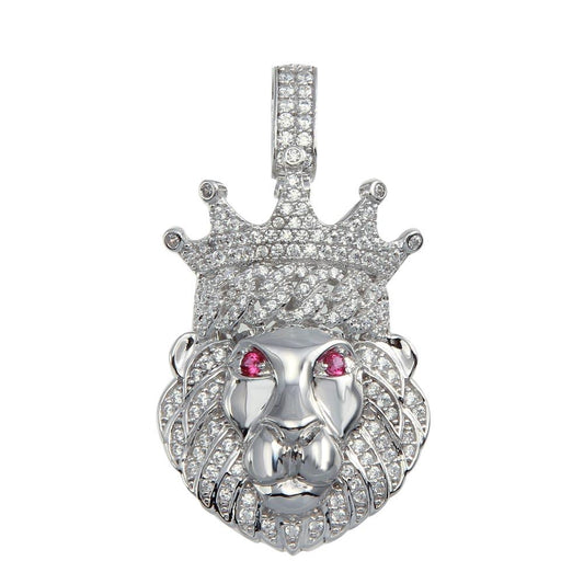 925 Sterling Silver Crown Lion CZ Pendant