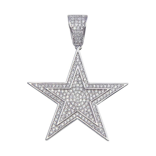 925 Sterling Silver Rhodium Plated CZ Star Hip ...