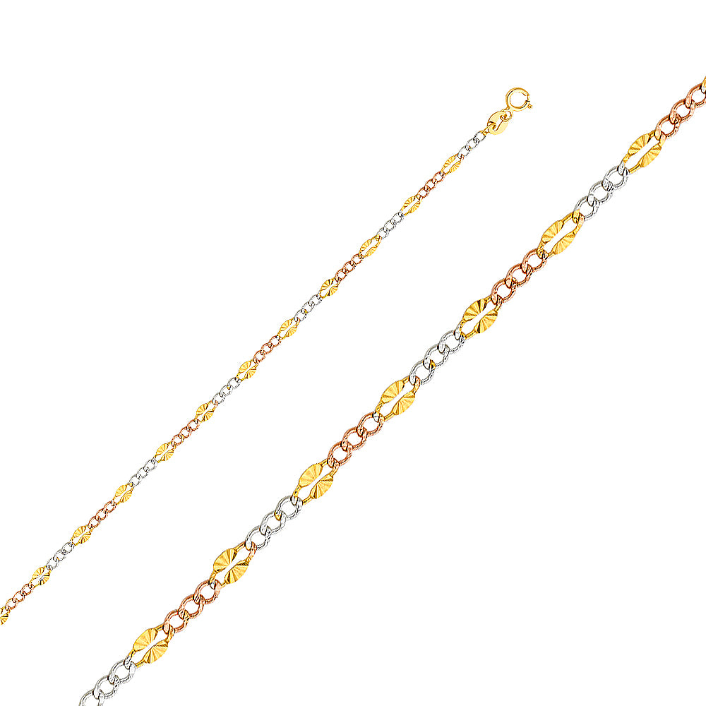 3.2mm 14K Solid Tri-Color Gold Stamped Star DC Figaro Chain 16 inches