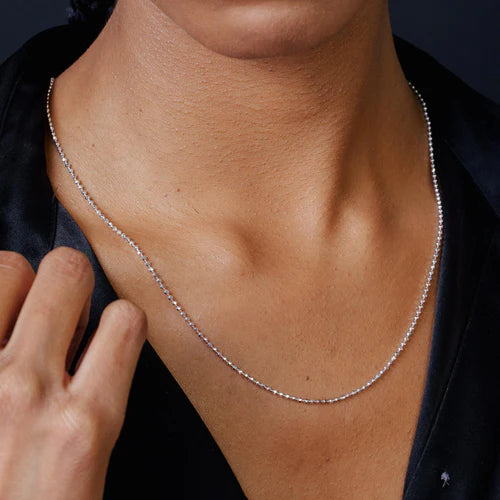 This 180cm chain is crafted from 925 sterling silver featuring meticulously diamond-cut beads measuring 1.8mm in diameter. The precision cuts enhance its brilliance and texture, providing a striking shimmer that elevates any jewelry design. Its combination of durability and refined craftsmanship makes it an excellent choice for professional-quality necklaces and accessories.