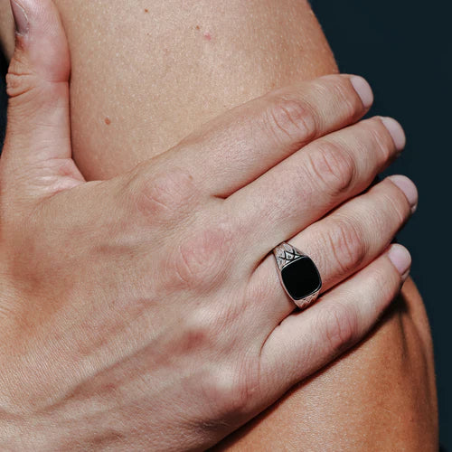 This 925 sterling silver ring features a precision rhodium plating for enhanced durability and a brilliant finish. Its intricate black enamel Celtic design across the shank offers a timeless symbol of heritage and craftsmanship. The combination of quality materials and detailed artistry ensures both lasting wear and a sophisticated look, ideal for those who appreciate expert jewelry design.