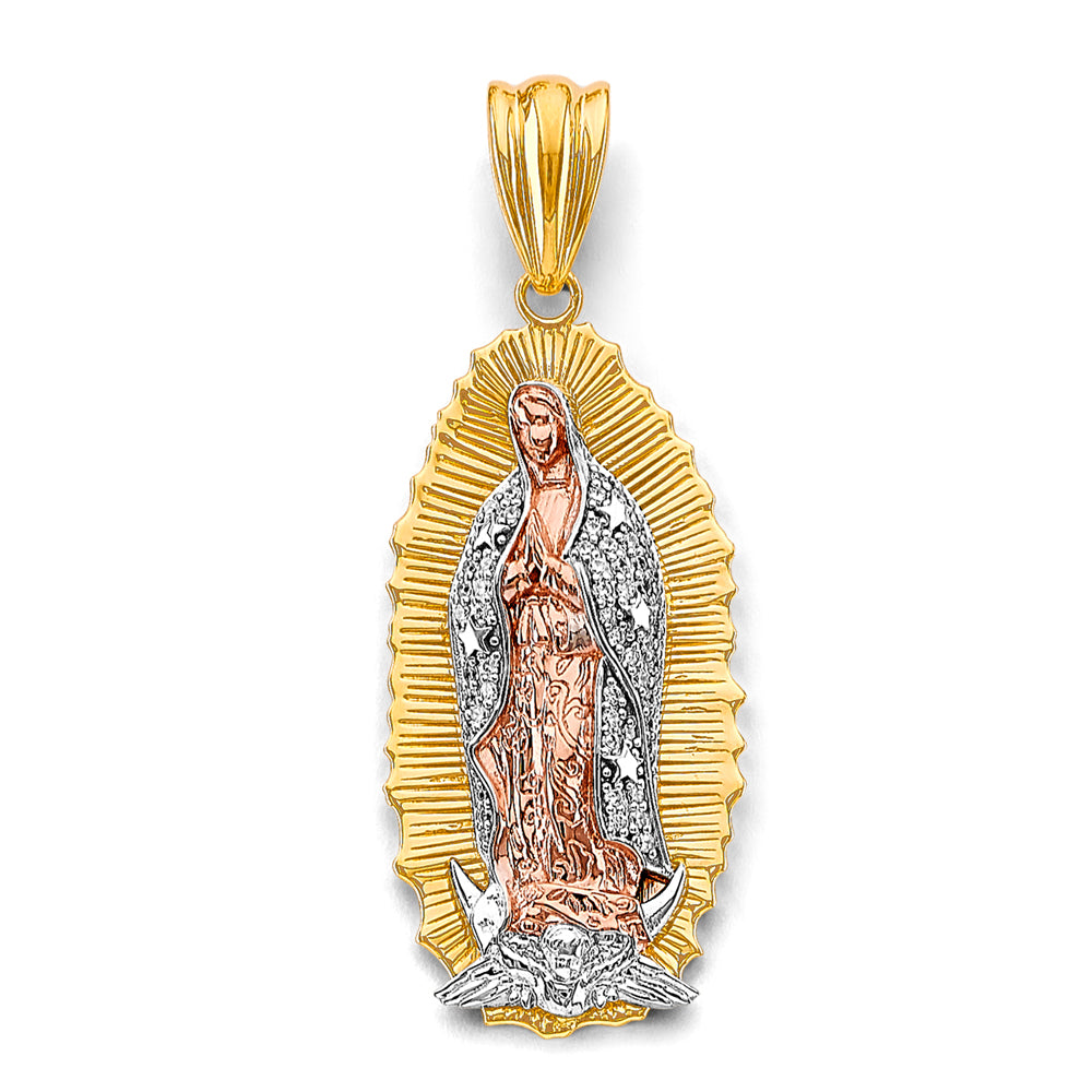 14K Tri-Color Gold Virgen de Guadalupe Medium Pendant with White CZ Accents