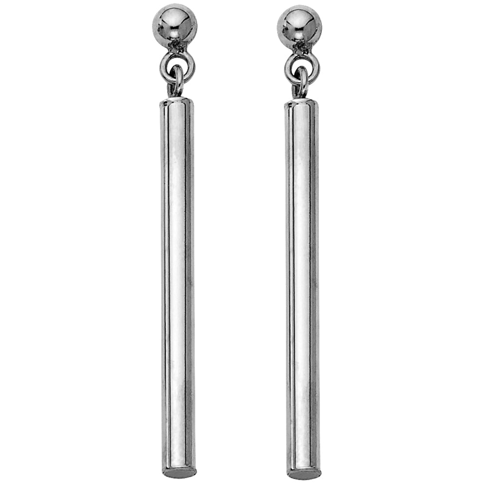 14K White Gold High-Polished Bar Drop Earrings 1 1/2" tall