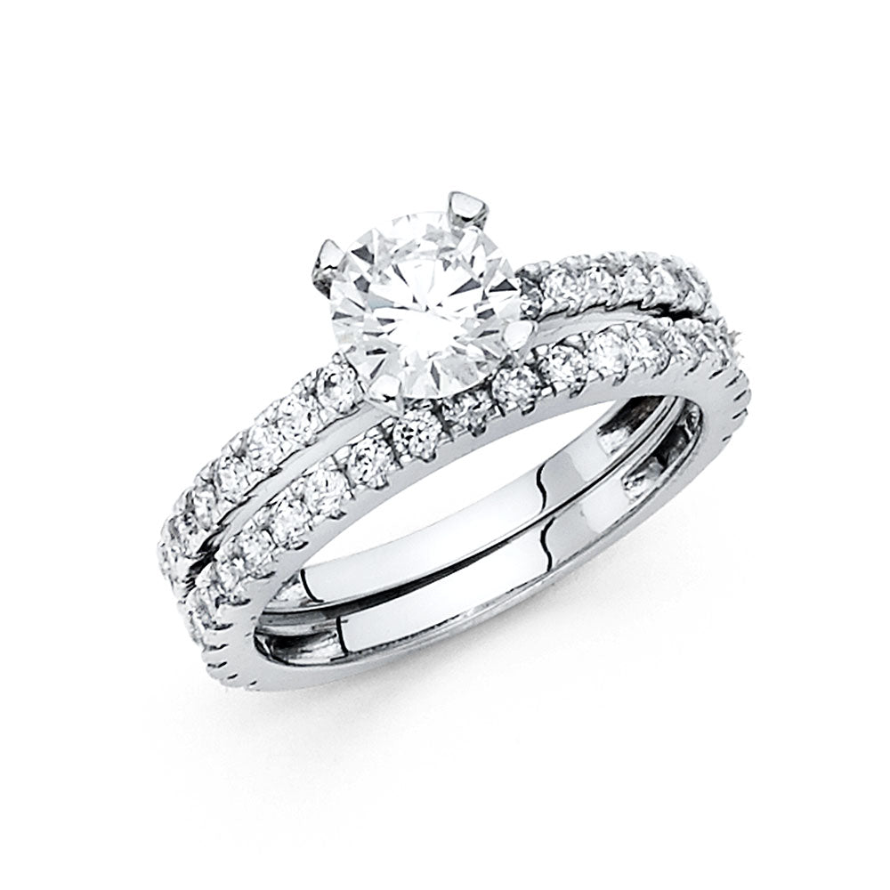 14K White Gold Round Solitaire CZ 2-Piece Wedding Band Set
