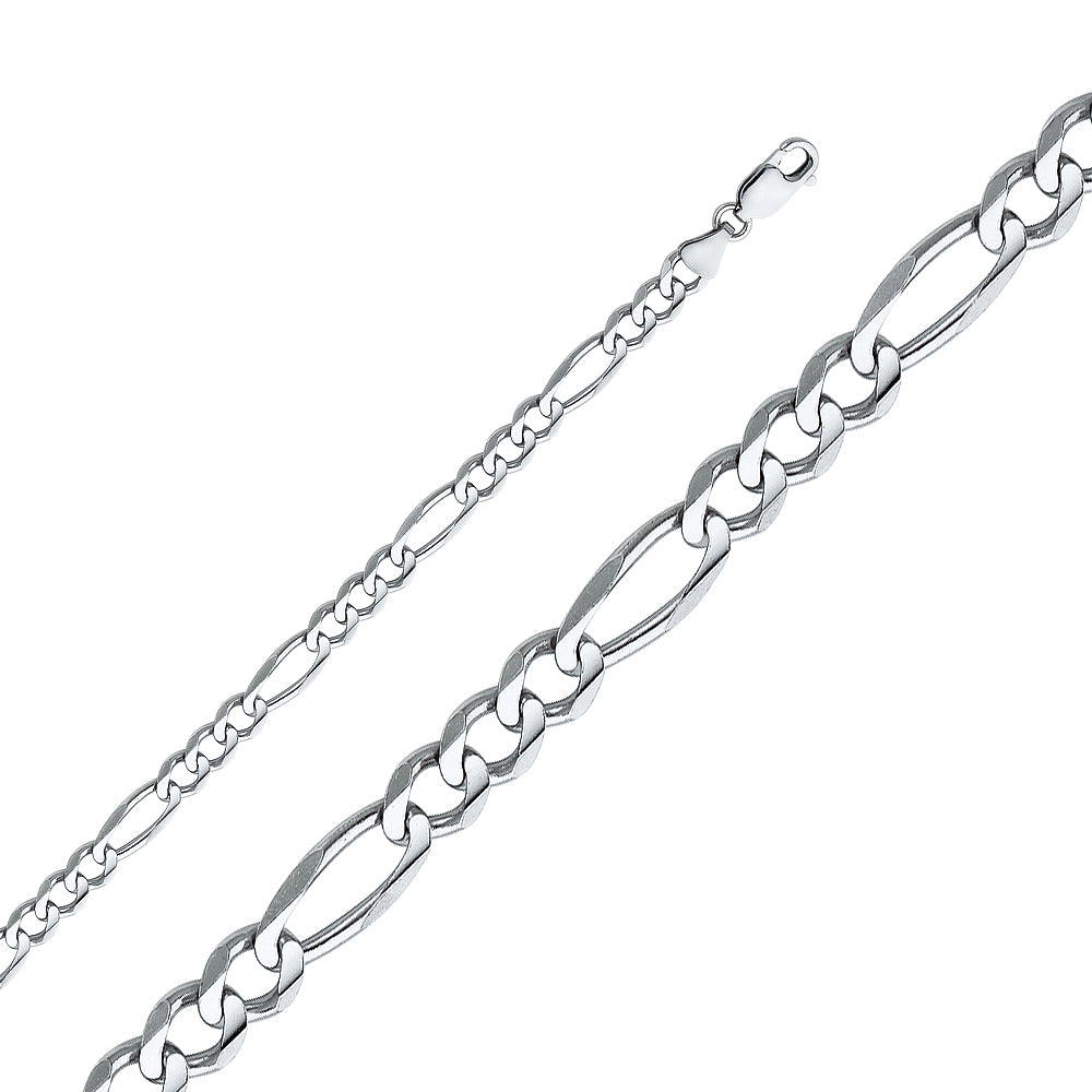 6.0mm 14K Solid White Gold Concave Figaro Chain Necklaces & Matching Bracelets