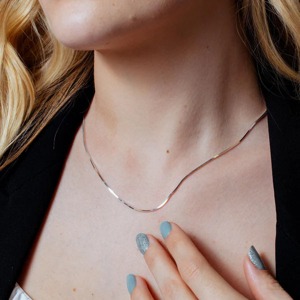 Crafted from high-quality 925 sterling silver, this 0.9mm four-sided snake chain features a distinctive square profile for a modern and sophisticated look. Its sleek design ensures flexibility and durability, making it ideal for everyday wear or layering with pendants. The polished finish enhances its shine, providing a refined accessory that complements both casual and formal styles.