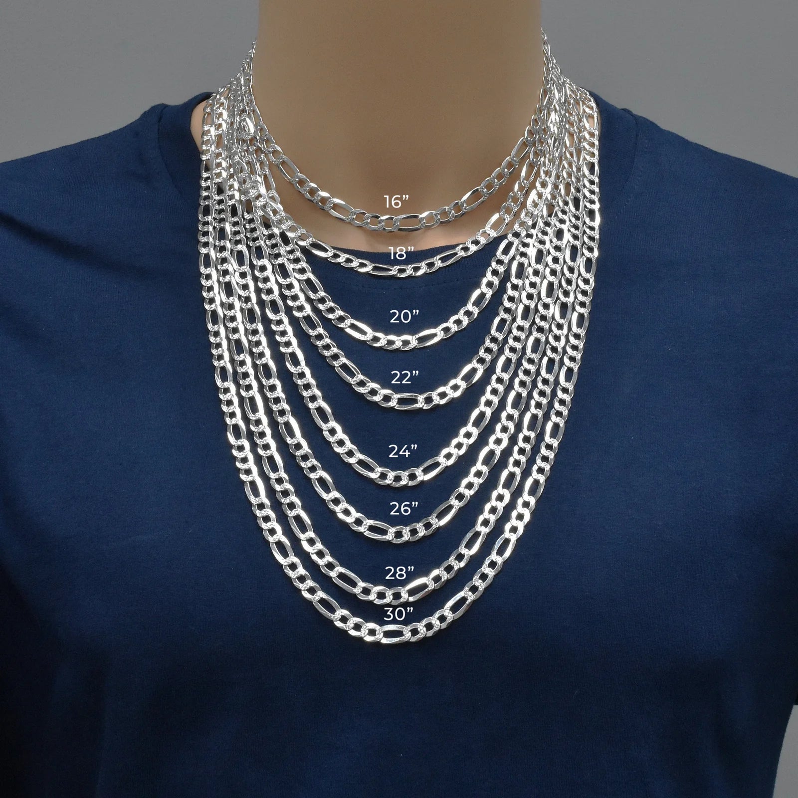 This 925 Sterling Silver Diamond Cut Figaro chain or bracelet features a refined 6.8mm width and a precise 160-link pattern, offering a classic yet bold design. Crafted from high-quality sterling silver, it delivers durability and a brilliant shine that resists tarnish. Its diamond-cut finish enhances light reflection, adding subtle texture and depth. Suitable for both casual and formal wear, this piece provides versatile styling options with expert craftsmanship.