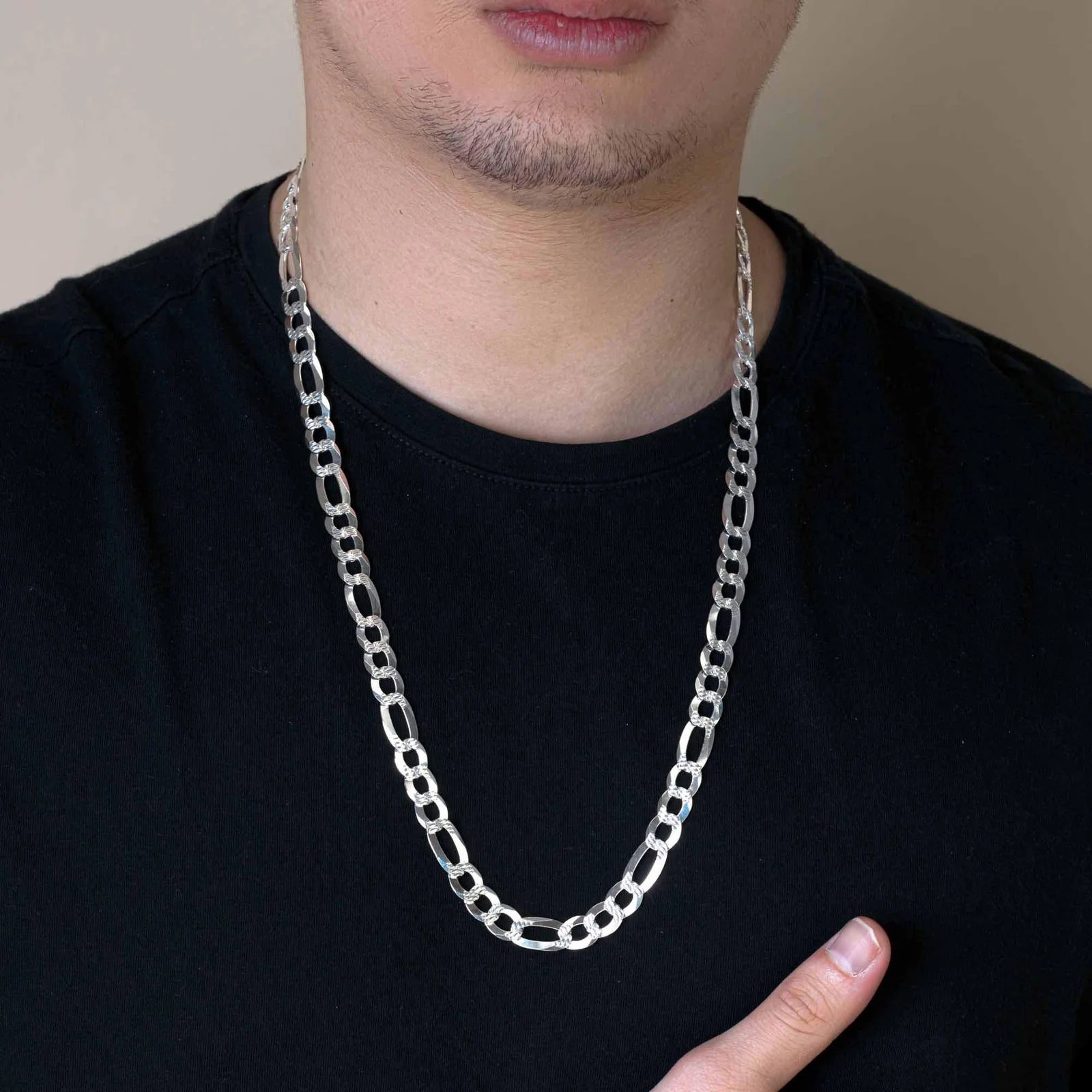 Crafted from high-quality 925 sterling silver, this 8.9mm Diamond Cut Figaro 200 chain or bracelet delivers a refined balance of durability and elegance. Its diamond-cut finish enhances brilliance, providing a sophisticated sparkle that complements any style. Designed for versatility, it can be worn as a statement chain or a bold bracelet, making it a timeless addition to your jewelry collection.