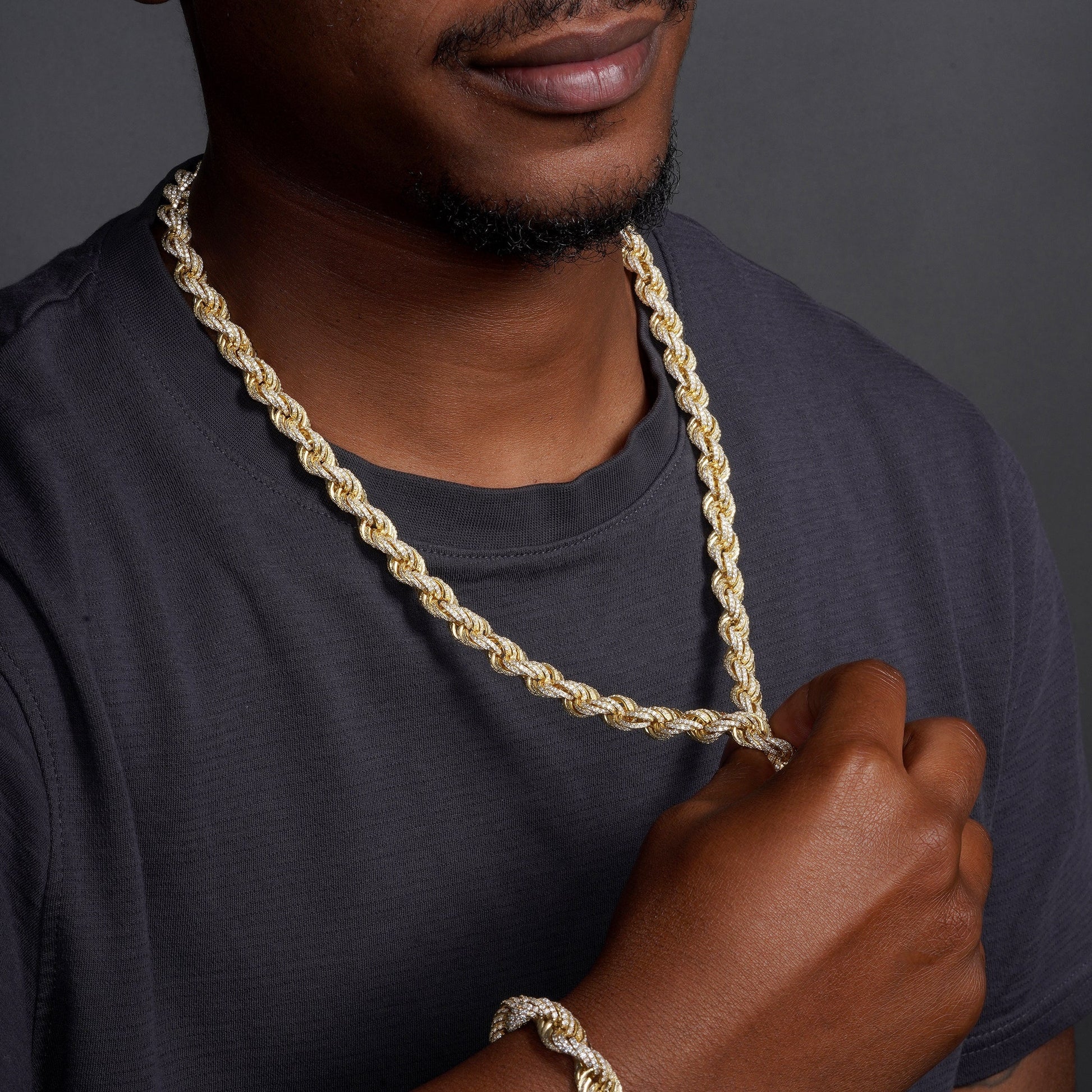 Crafted from 925 sterling silver and enhanced with a sophisticated gold plating, this 9.7mm rope chain or bracelet features dazzling cubic zirconia accents for refined brilliance. Its sturdy construction ensures lasting durability while offering an elegant statement piece suitable for both everyday wear and special occasions. The intricate rope design combines classic craftsmanship with modern sparkle, making it a versatile addition to any jewelry collection.