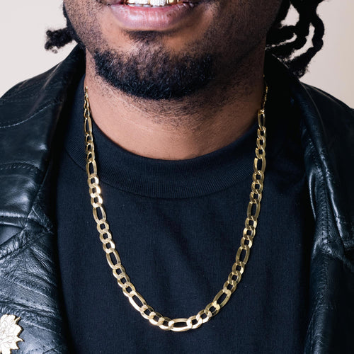 Crafted from 925 sterling silver and finished with a refined gold plating, this super flat Figaro 180 chain or bracelet features a 7.8mm width that balances durability with a sleek, modern profile. The flat design enhances comfort and wearability, making it an ideal statement piece for both everyday wear and special occasions. Its meticulous Figaro link pattern ensures timeless elegance paired with strength, suitable for those seeking quality and subtle sophistication in their jewelry.