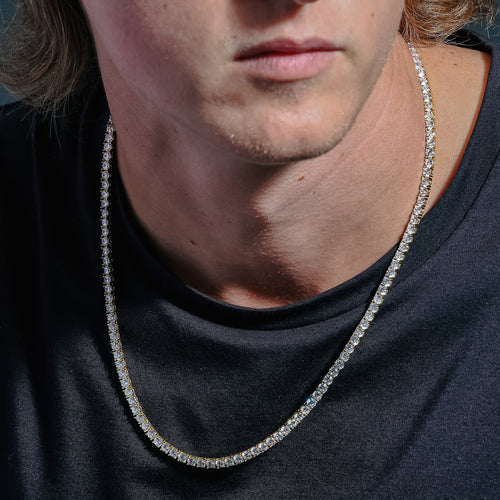 Elevate your jewelry collection with this 4mm tennis necklace or bracelet, crafted from 925 sterling silver and finished with a refined gold plating. Featuring dazzling cubic zirconia stones, this piece offers classic elegance and durable shine. Perfect for adding a sophisticated sparkle to any outfit, its timeless design ensures versatile wear for both casual and formal occasions.