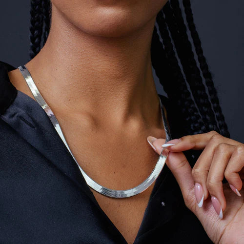 Crafted from high-quality 925 sterling silver, this 6.8mm Herring Bone chain or bracelet offers a sleek, durable design known for its tightly woven, flat pattern. Ideal for both casual and formal wear, it provides a comfortable fit while maintaining a polished, sophisticated look. Its sturdy construction ensures lasting shine and resilience, making it a refined accessory that enhances any jewelry collection.