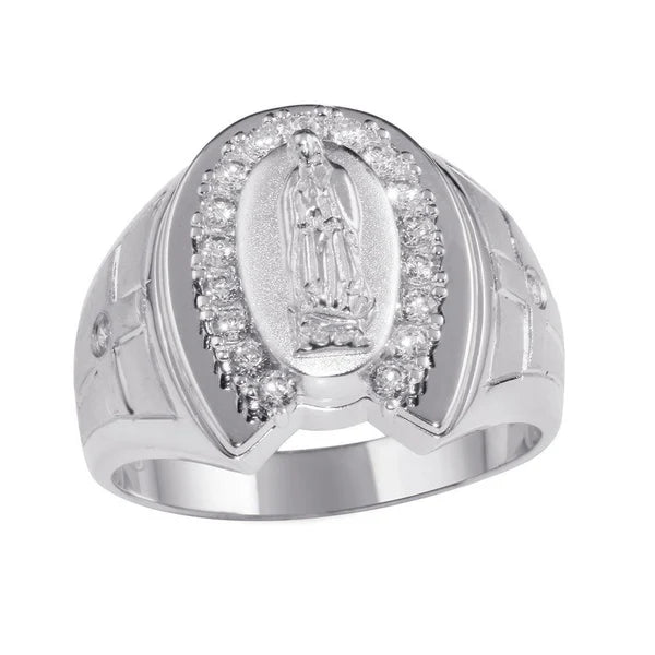 925 Sterling Silver Rhodium Lady of Guadalupe Ring