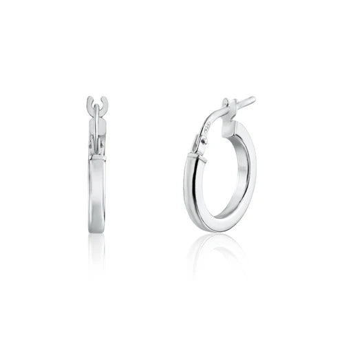 925 Sterling Silver Rhodium Plated 2mm Hoop Earring 10mm