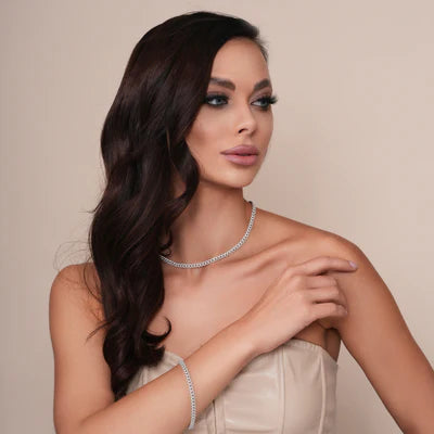 Crafted from 925 sterling silver and enhanced with a rhodium plating, this 5.5mm Monaco chain or bracelet features meticulously set cubic zirconia stones that provide a brilliant, enduring shine. Its balanced width offers a refined yet substantial presence, ideal for both everyday wear and special occasions. The rhodium plating not only enhances durability but also ensures resistance to tarnish, making this piece a long-lasting addition to any jewelry collection.