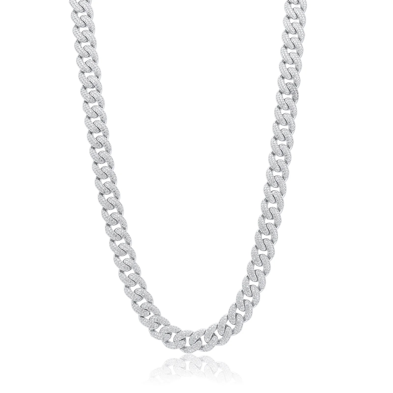 Crafted from premium 925 sterling silver and enhanced with a protective rhodium plating, this 9.5mm Miami Curb chain or bracelet offers both durability and a refined shine. The carefully set cubic zirconia stones add exceptional brilliance, mimicking the allure of genuine diamonds. Its classic design ensures versatile wear, making it a sophisticated choice for those seeking a luxurious yet reliable accessory. Ideal for elevating any look with expert craftsmanship and lasting elegance.