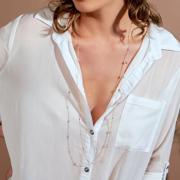 Crafted from premium 925 sterling silver and finished with a rhodium plating, this CZ By Yard Chain Necklace offers enduring shine and durability. Its delicate design features carefully set cubic zirconia stones spaced evenly along the chain, providing subtle brilliance suitable for both everyday wear and special occasions. The rhodium plating enhances tarnish resistance, ensuring long-lasting elegance with minimal maintenance. This versatile necklace effortlessly complements any outfit, making it a refined choice for those seeking expert-quality fine jewelry.