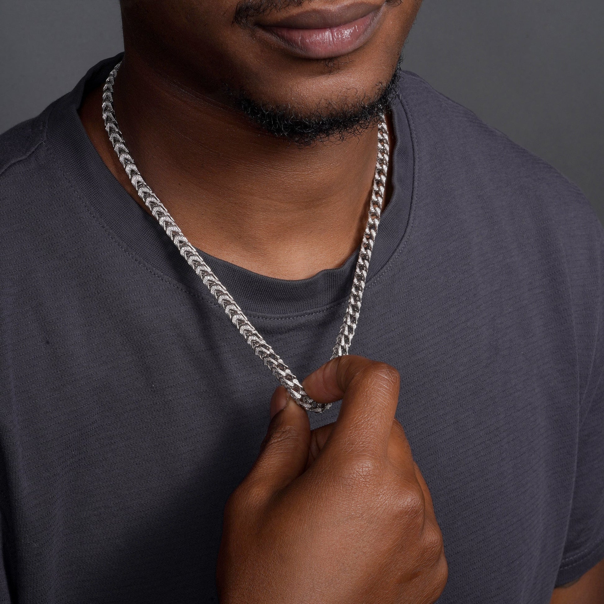 Crafted from 925 sterling silver and enhanced with a rhodium plating, this 5mm Franco chain or bracelet features meticulously encrusted cubic zirconia stones for a refined, brilliant finish. Its robust design ensures durability while maintaining a sleek, expert-level aesthetic—ideal for those seeking both strength and sophisticated sparkle in their jewelry.