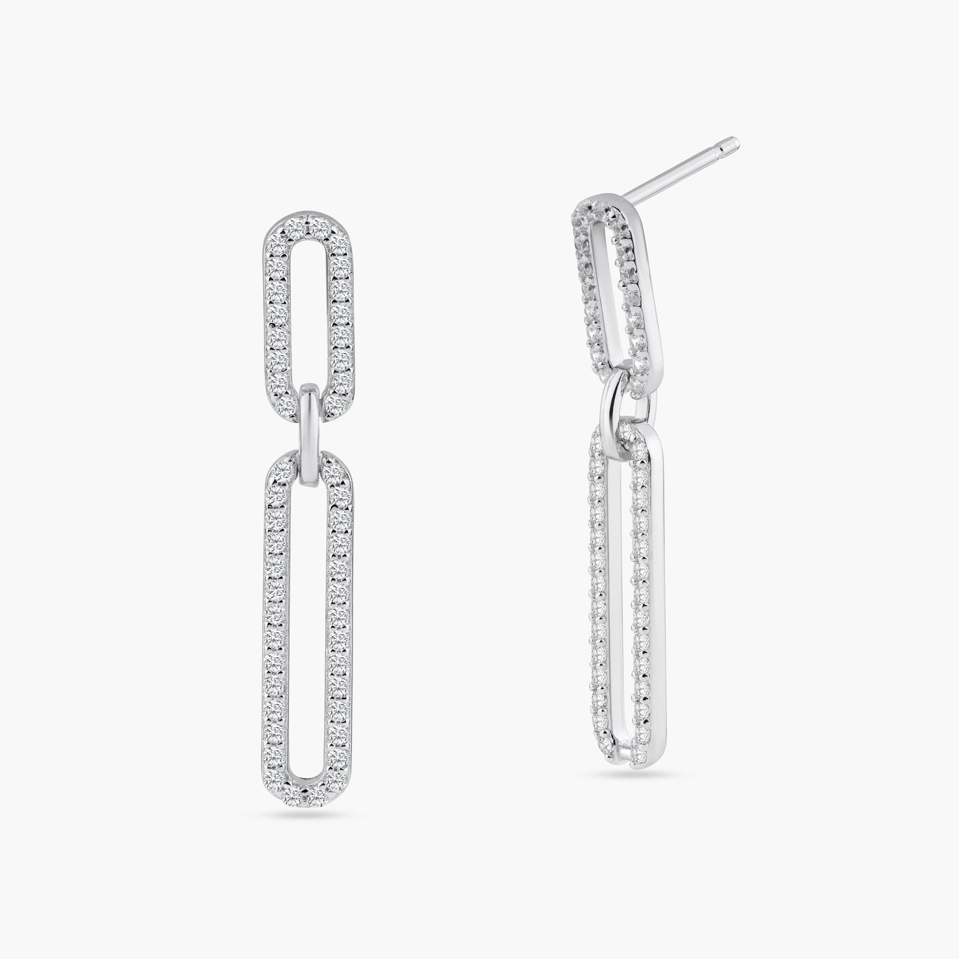 Crafted from 925 sterling silver and finished with a rhodium plating, this dangling paperclip earring combines modern design with lasting durability. The embedded cubic zirconia adds refined sparkle, enhancing any outfit with subtle sophistication. Lightweight and hypoallergenic, it offers comfort for daily wear without compromising style. Ideal for those seeking a contemporary accessory that stands out while maintaining elegance.