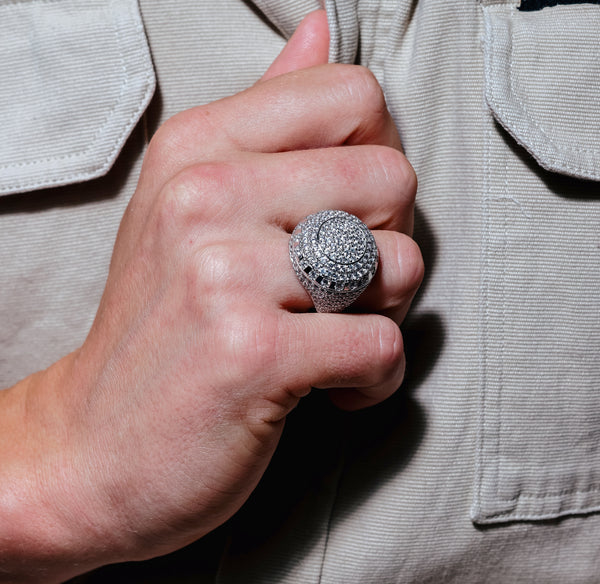 Crafted from high-quality 925 sterling silver and enhanced with a protective rhodium plating, this dome-shaped hip hop ring features dazzling cubic zirconia stones that offer lasting brilliance. Its bold design captures the essence of urban style while ensuring durability and tarnish resistance. Ideal for those seeking a statement piece that combines expert craftsmanship with modern streetwear flair.