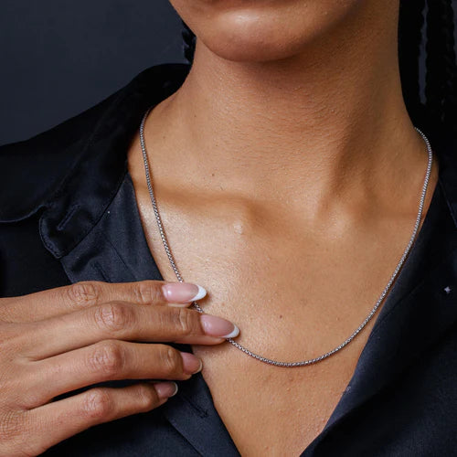 This 925 Sterling Silver Rhodium Plated Round Box Chain, measuring 1.7mm in thickness, offers a durable and elegant design ideal for both everyday wear and special occasions. The rhodium plating enhances its resistance to tarnish while maintaining a bright, polished finish. Its round box link construction provides flexibility and strength, making it a reliable choice for securing pendants or wearing alone as a refined accessory.