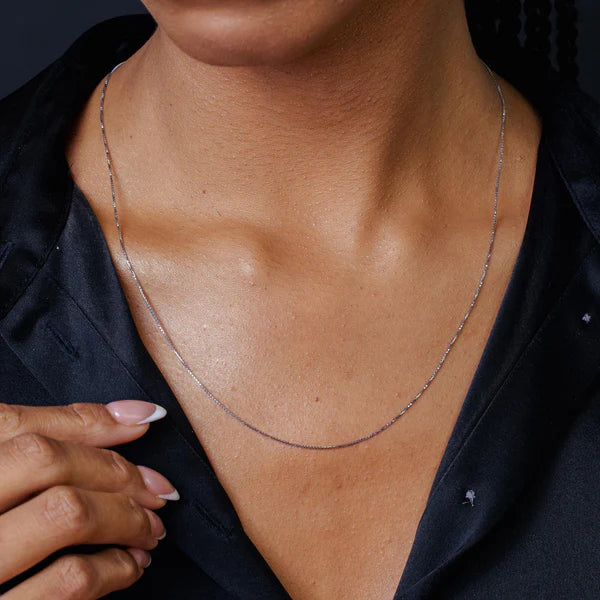 This set of six 925 sterling silver chains features a sleek Greek link box design, enhanced by a rhodium plating that ensures lasting shine and tarnish resistance. Each 0.8mm chain offers a refined, durable look, ideal for layering or wearing alone. Crafted with precision, these chains provide versatility and elegance suitable for both everyday wear and special occasions.