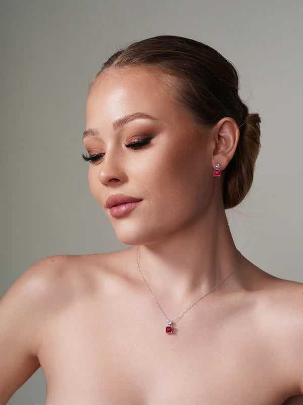 Crafted from 925 sterling silver and enhanced with a rhodium plating, this square birthstone CZ hanging set offers lasting shine and durability. Each piece features precisely cut cubic zirconia stones representing birth months, combining elegance with personal significance. Ideal for adding a refined touch to any outfit while celebrating individuality.