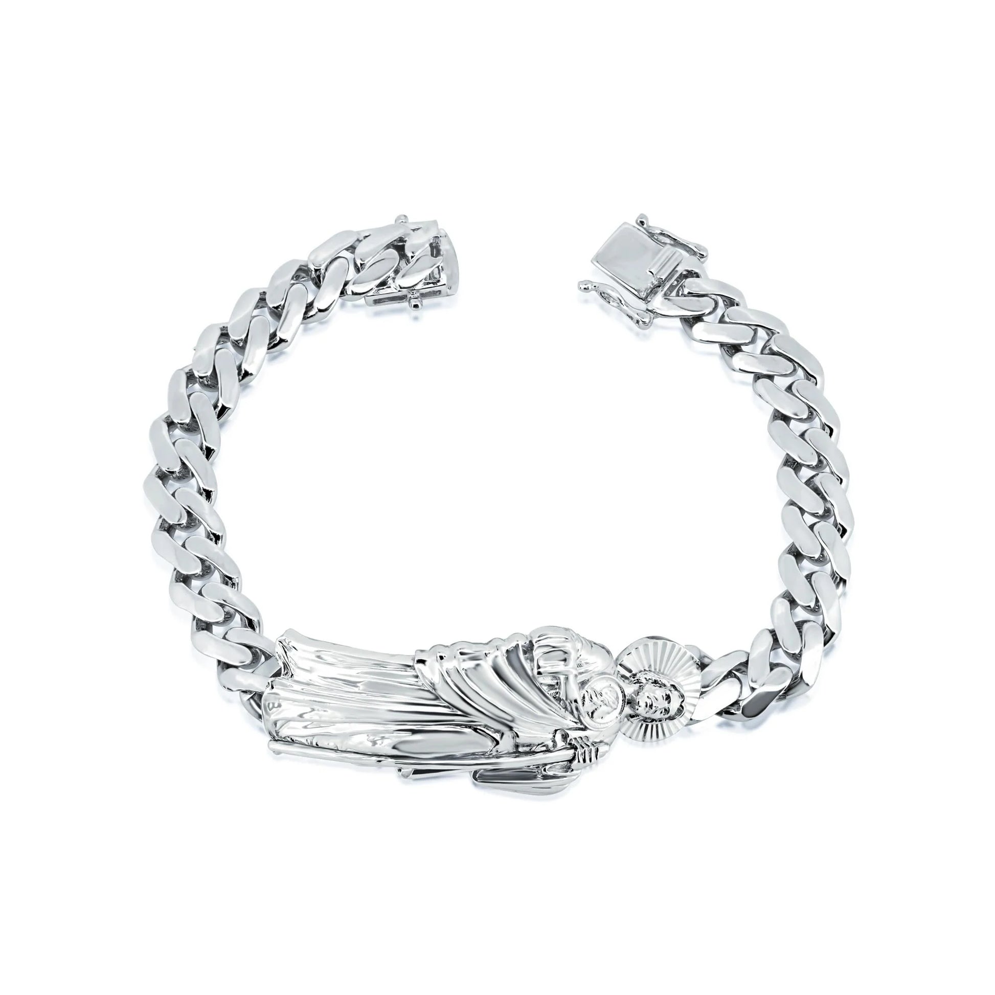 925 Sterling Silver Rhodium Plated St Jude Cuban 8.8mm Cuban Bracelet