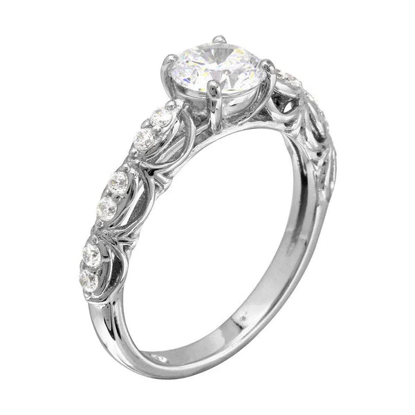 925 Sterling Silver Rhodium Plated Wave Shank Design Bridal CZ Ring