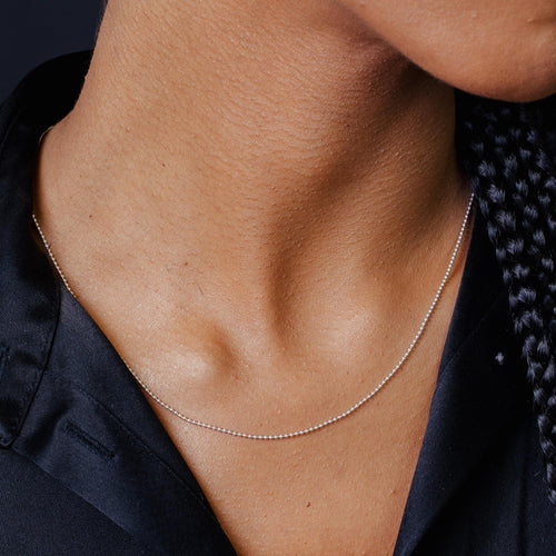 Crafted with precision, the Silver Bead 150 Chain 1.5mm offers a refined and subtle design ideal for both standalone wear and complementing pendants. Its 1.5mm bead spacing provides durability while maintaining a delicate appearance, making it a versatile choice for daily use or special occasions. This chain exemplifies expert craftsmanship, ensuring reliable strength paired with elegant simplicity.